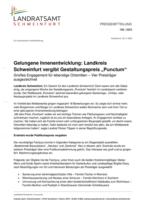 Gestaltungspreis des Landkreises Schweinfurt
